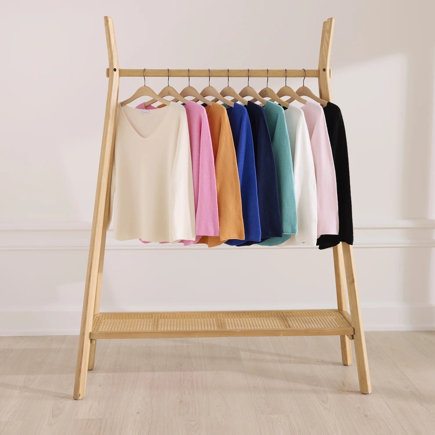 Quand les températures chutent un peu, on glisse un pull fin ou un cardigan par-dessus. Privilégiez une coupe un peu courte, qui ne « noie » pas la taille, pour garder la silhouette féminine et fluide. Les tons pastel, écru ou terracotta fonctionnent parfaitement avec une jupe longue colorée ou à motifs. Et hop, on chausse des bottines ou des mocassins pour un look cosy et élégant.