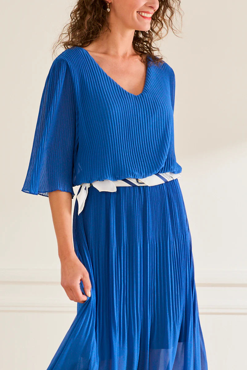 → La robe plissé Armelle est idéale ! Ses manches trois-quarts et sa coupe midi couvre à la fois le corps tout en restant légère. -